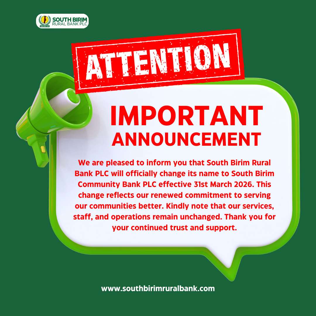 © South Birim Rural Bank | +233 (0)50 129 1771 | info@southbirimruralbank.com | Apr. 2026